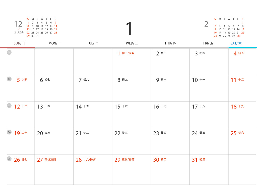【桌曆規格】